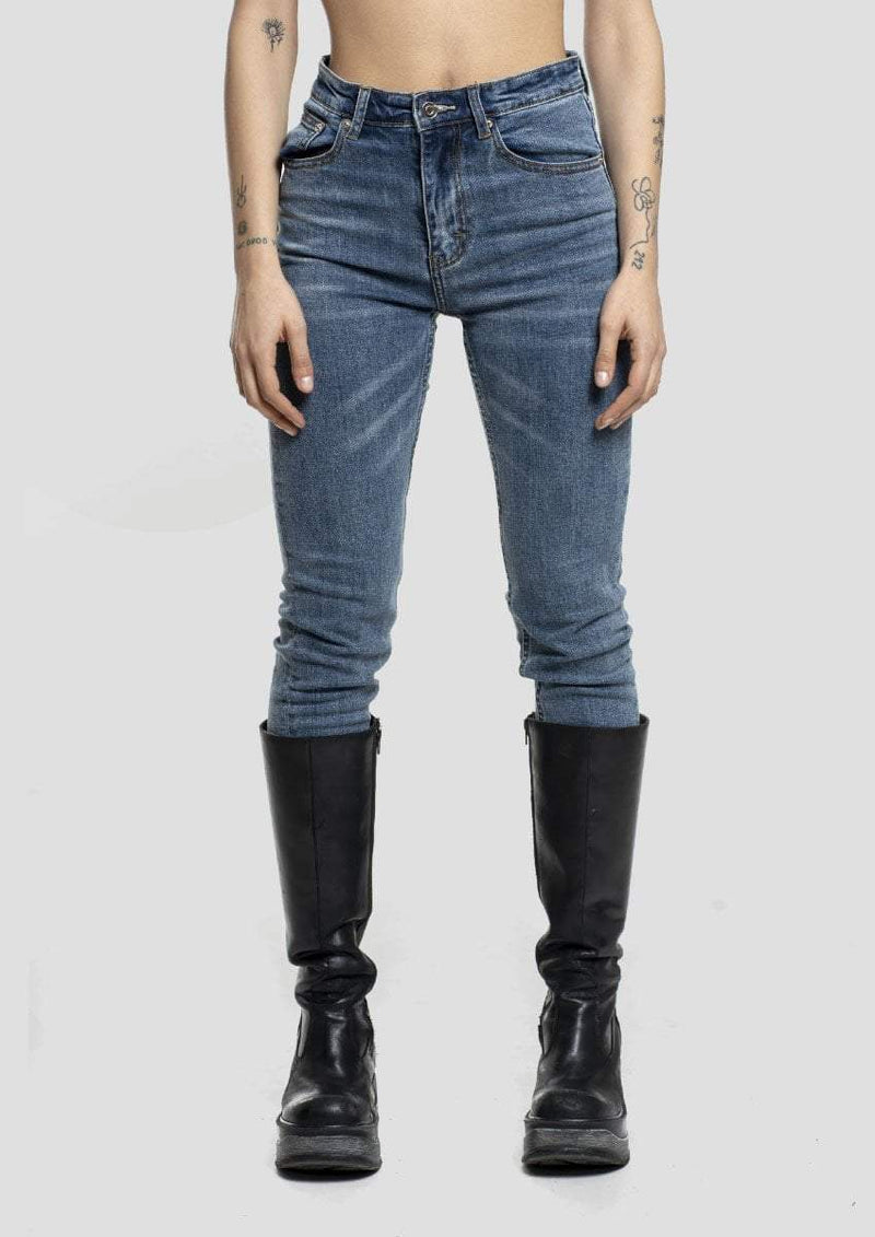 DESCRIZIONE: Jeans denim elasticizzato e aderente con cerniera "retro zip" e logo Alienation sulla patch nera sulla parte posteriore.