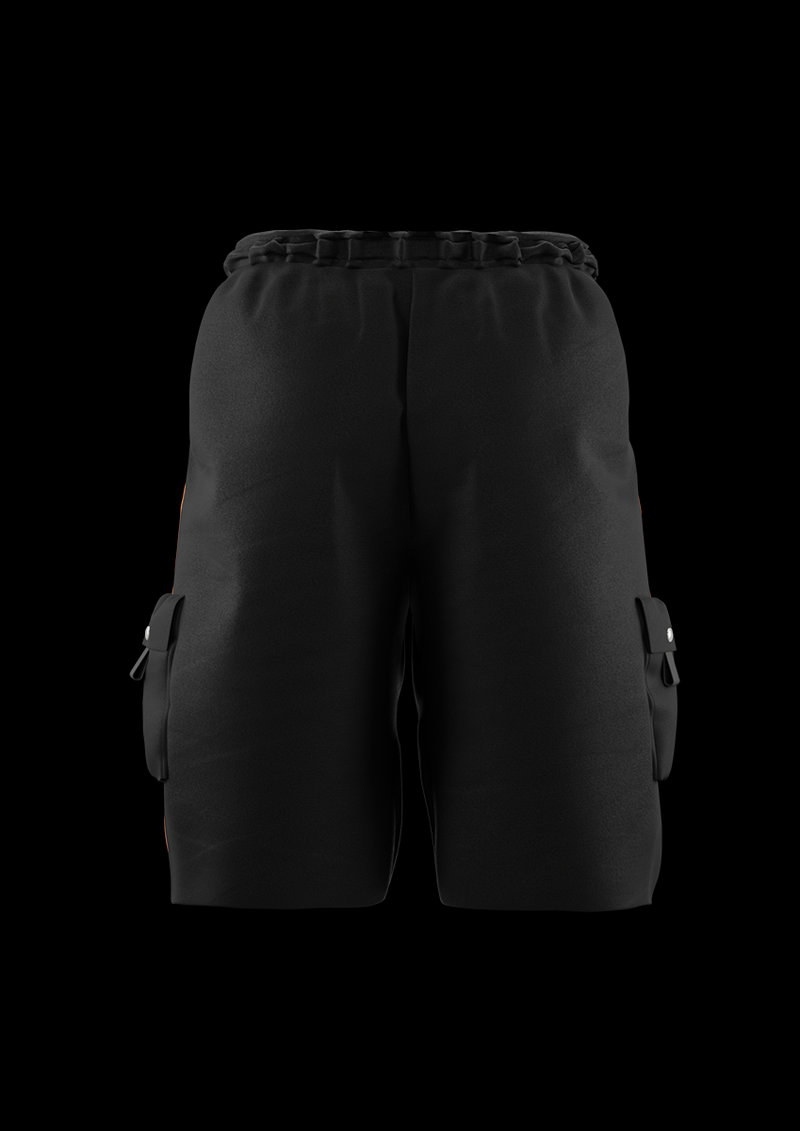 Pantaloncini corti stile cargo con bande laterali arancioni e tasche laterali. Realizzati in 100% cotone, perfetti per i giorni caldi d’estate.