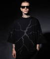 T-shirt unisex nera, oversize, maniche tre quarti. Composta da 250g di 100% cotone Jersey di alta qualità, fit ampio ma boxy: largo sì, lungo no.