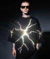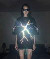 Di base una t-shirt nera normale. Poi una luce diretta la colpisce(flash, fari ecc). Boom, la t-shirt si illumina.