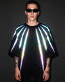 Di base una t-shirt nera normale. Poi una luce diretta li colpisce(flash, fari ecc). Boom, la t-shirt si illumina.