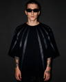 T-shirt unisex nera, oversize, maniche tre quarti. Composta da 250g di 100% cotone Jersey di alta qualità, fit ampio ma boxy: largo sì, lungo no.