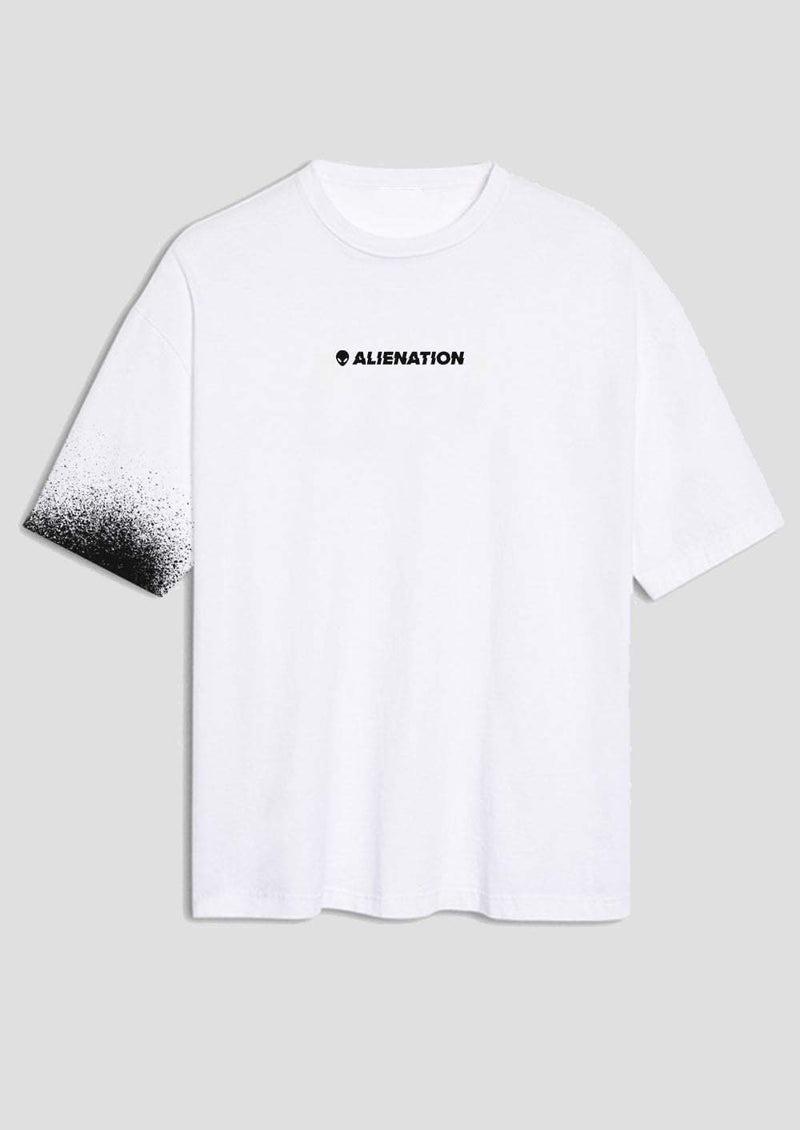 Tshirt 100% cotone marchiata Alienation, realizzata con estrema cura. Per questa tshirt abbiamo pensato di richiamare lo stile del graffito mettendo un alieno spray sul retro, mentre sul petto presenta il logo Alienation.