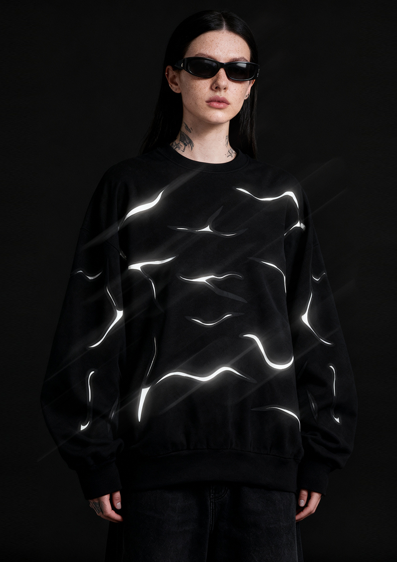 La crewneck Anima è tutta un’esplosione di luce nascosta. Le rotture sul tessuto rivelano un arcobaleno riflettente, simboleggiando la tua anima che si libera. Un capo oversize e ribelle, in edizione limitata e disponibile solo su Alienation.